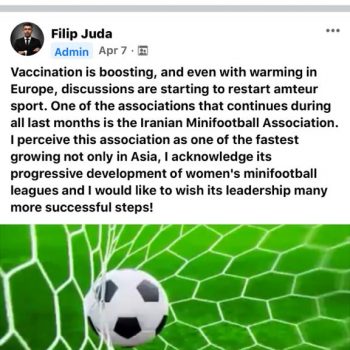 فیلیپ جودا رییس فدراسیون جهانی مینی فوتبال روز گذشته در صفحه شخصی خود با به اشتراک گذاشتن فیلم مسابقات مینی فوتبال در ایران و برگزاری کلاس های مدرسی، داوری و…