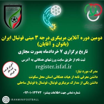 تمامی علاقمندان به رشته مینی فوتبال در رده سنی ۱۷ تا ۲۳ سال آقایان و بالای ۱۷ سال بانوان می توانند تا تاریخ ۱۷ خرداد ۱۴۰۰ فرم ثبت نام در…